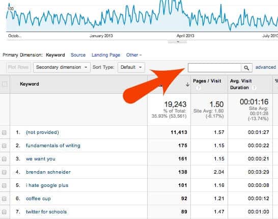 The next step is to find the search box and enter terms which will search the terms that people used to find your website. The idea is to search using the terms who, how, where, what, and why and see what drove people to your site.